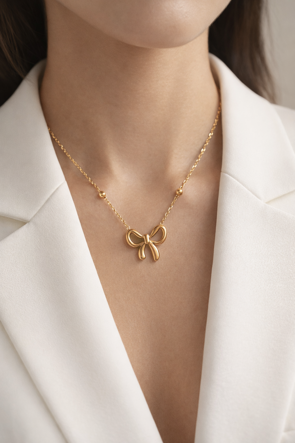 Designed with a minimal yet classy ribbon-shaped pendant, this necklace reflects softness, femininity, and modern fashion.