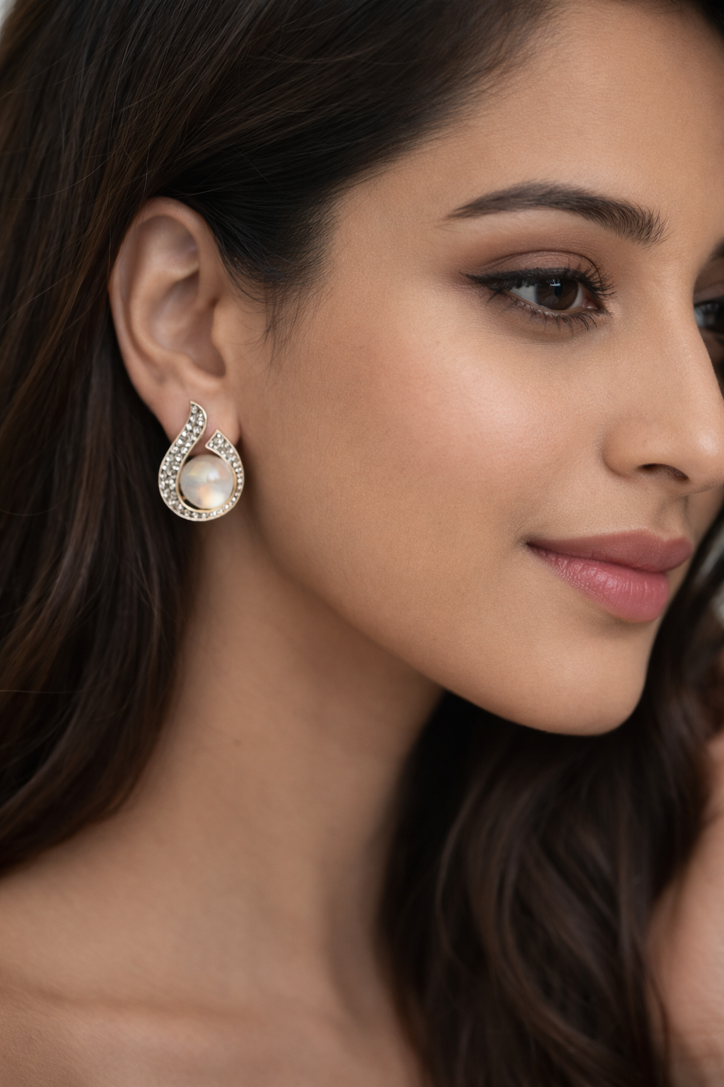 & Free ShippingAdd a touch of elegance to your everyday look with these beautifully designed silver plated stud earrings. Featuring a crystal-studded curved design with a moonstone-look center, these earrings offer a classy and modern appeal. Lightweight, comfortable, and perfect for daily or party wear.