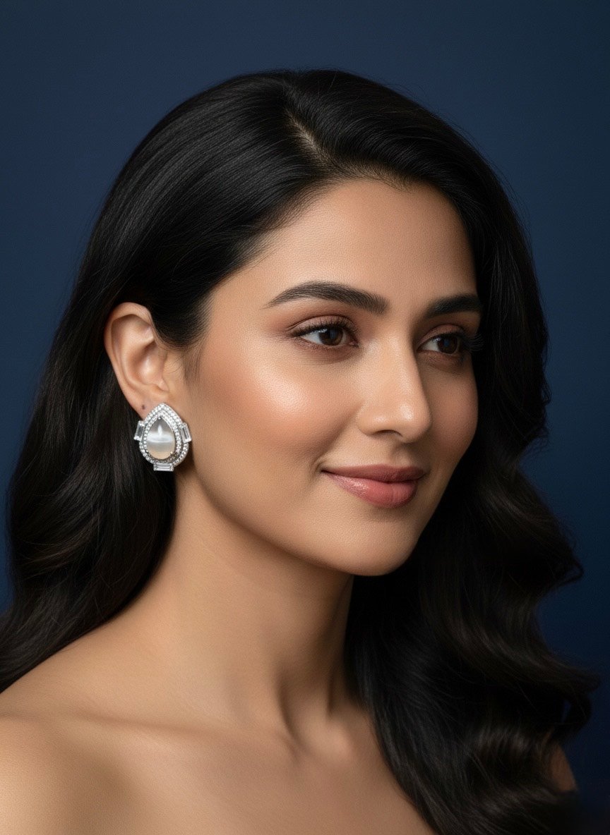& Free ShippingPremium teardrop pearl stud earrings featuring a glossy center stone and sparkling crystal accents. Elegant, lightweight and perfect for weddings, parties and festive wear. A classy statement piece for modern women.