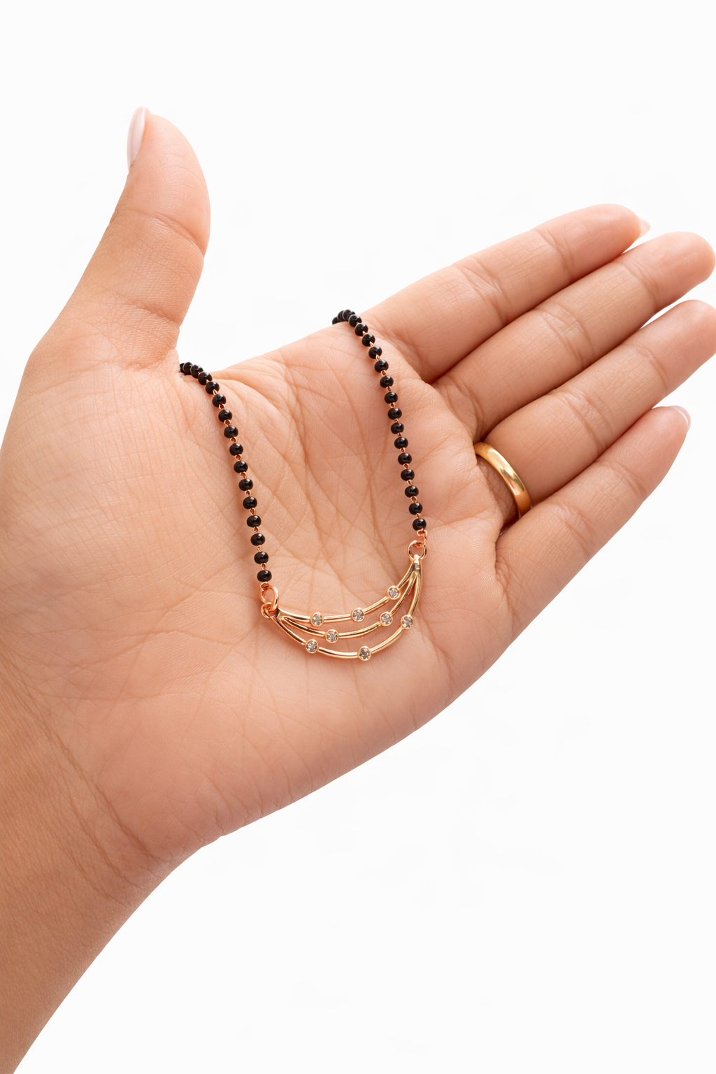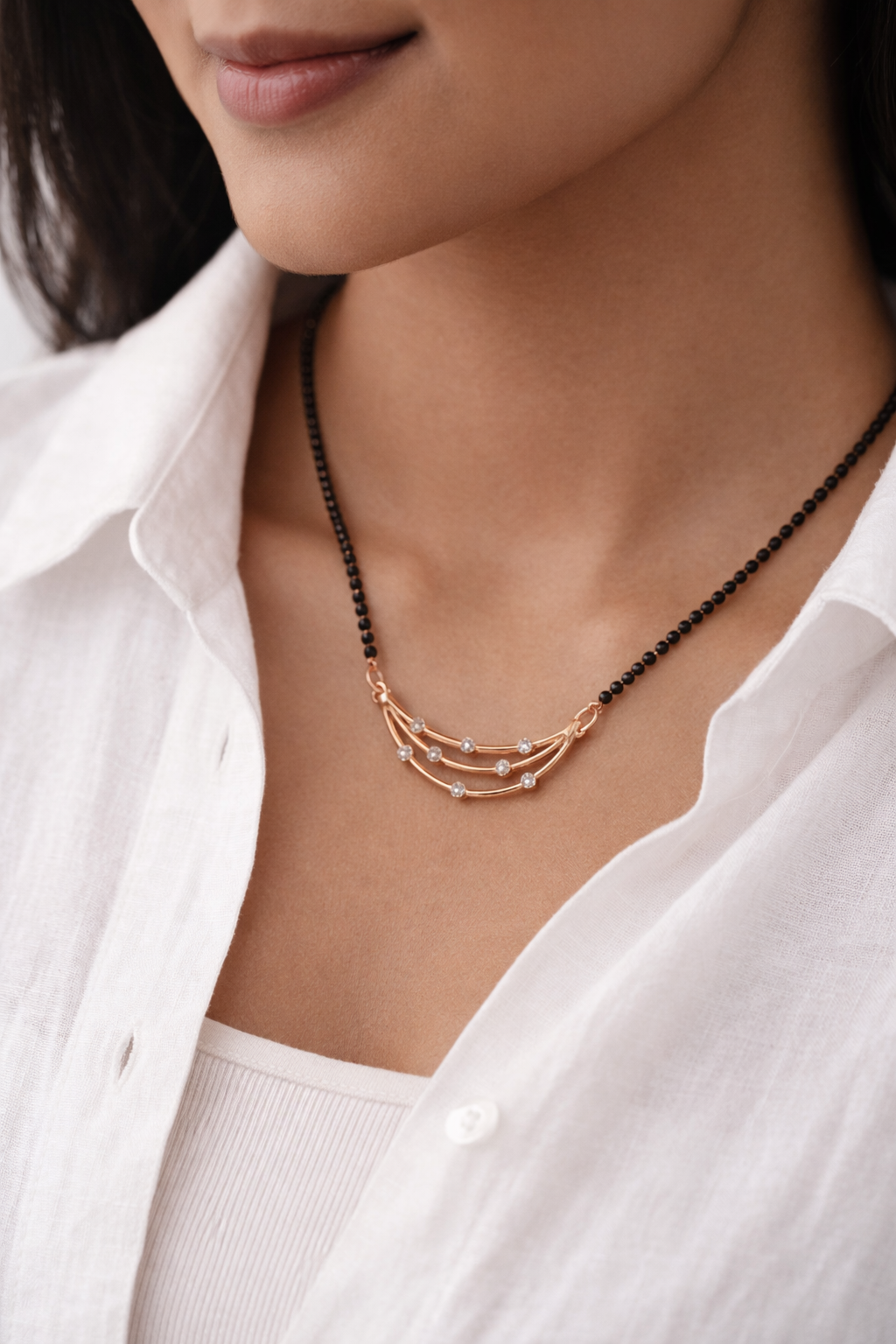 Stylish Rose Gold Plated Mangalsutra with Black Beads Chain